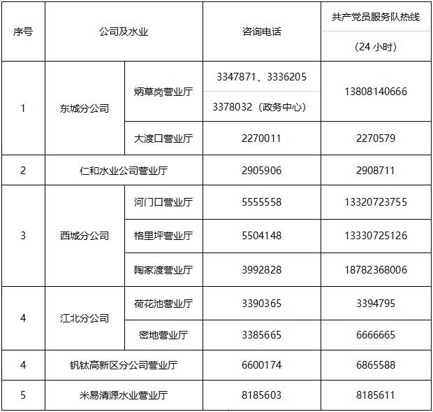 公司及水業(yè)咨詢電話及共產黨員服務隊電話: